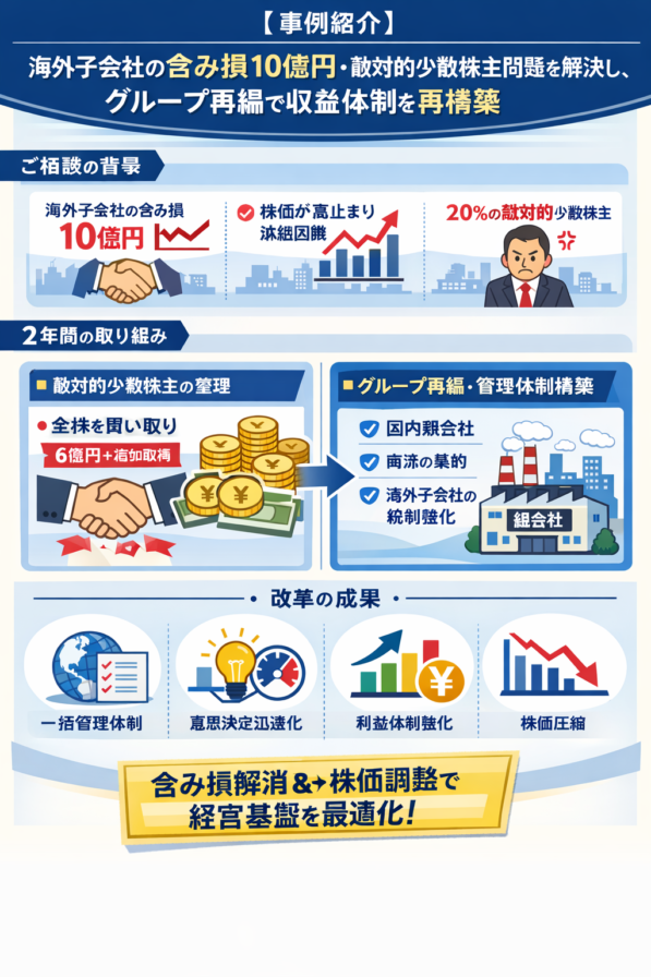 海外子会社の含み損10億円・敵対的少数株主問題を解決し、グループ再編で収益体制を再構築
